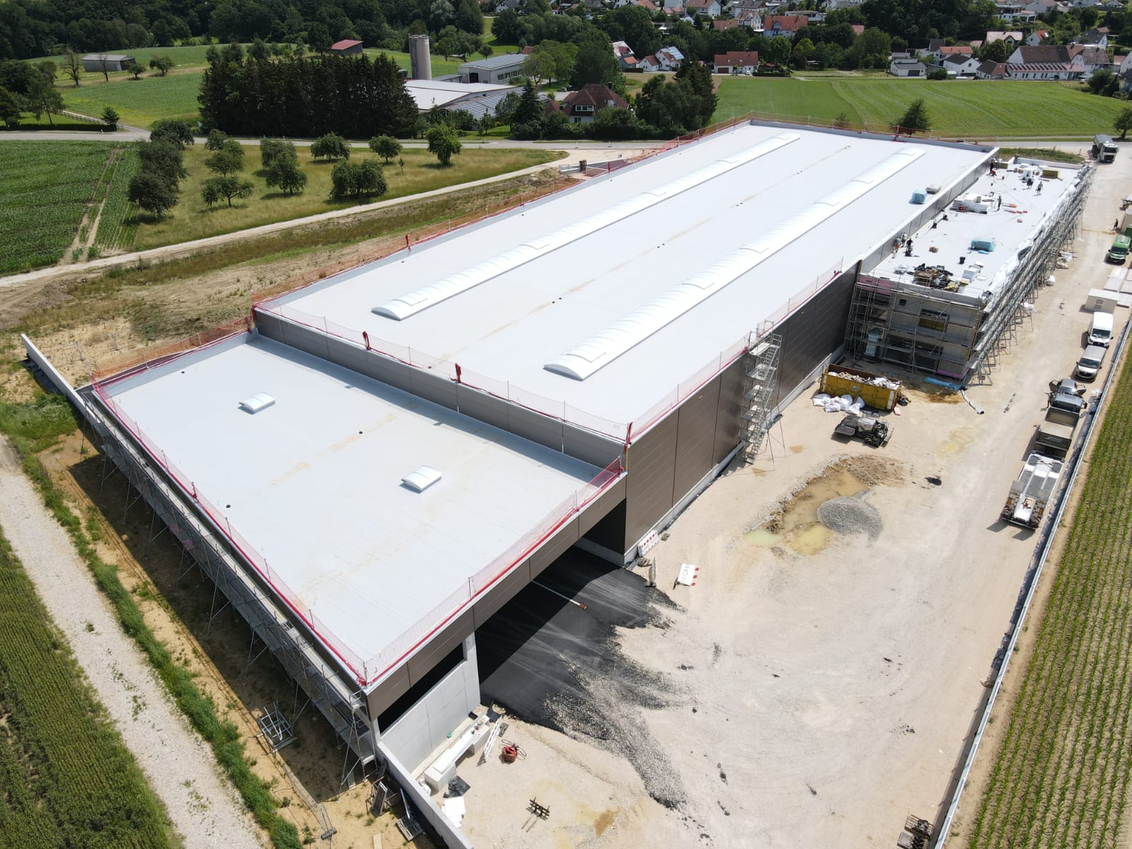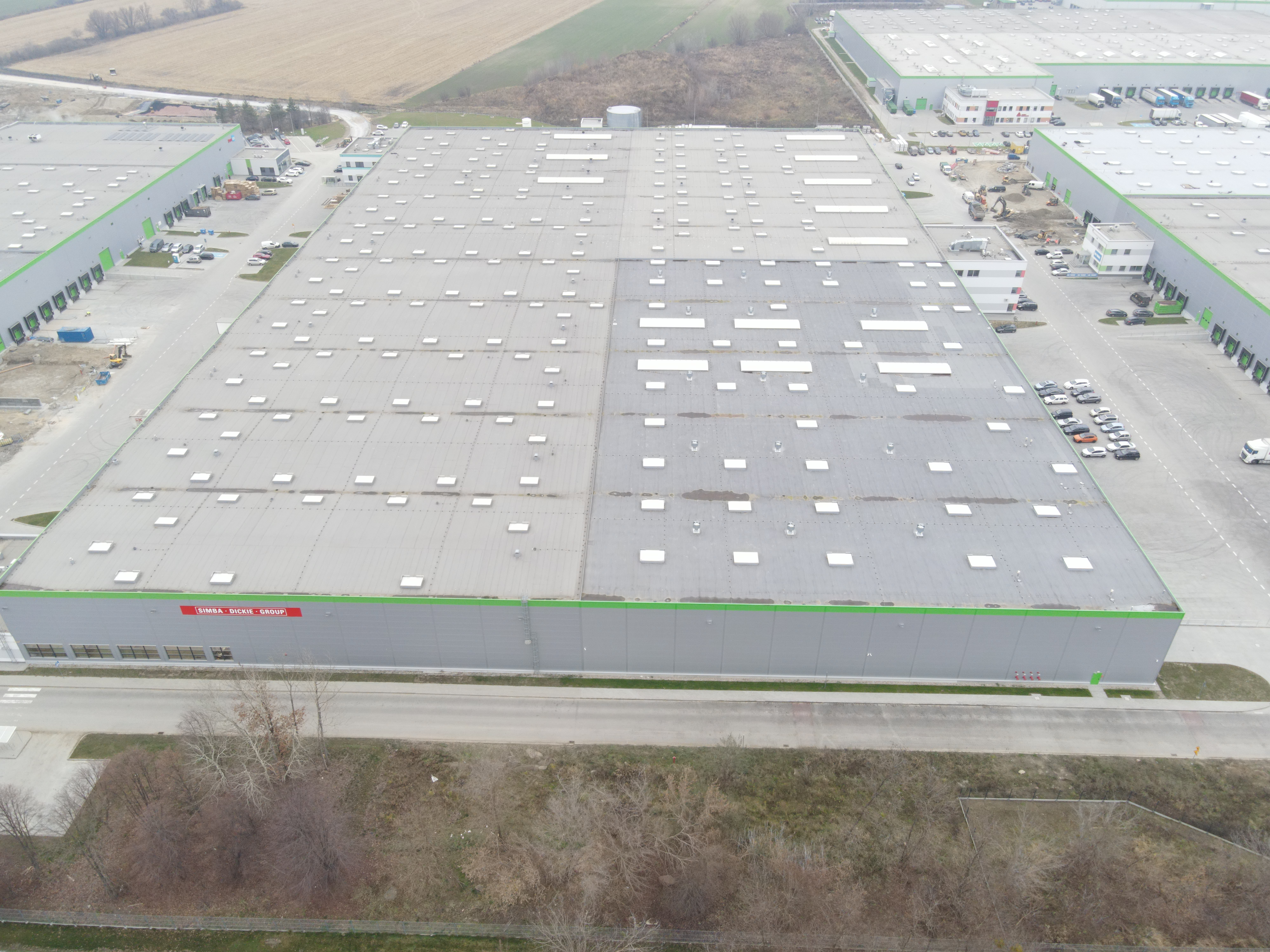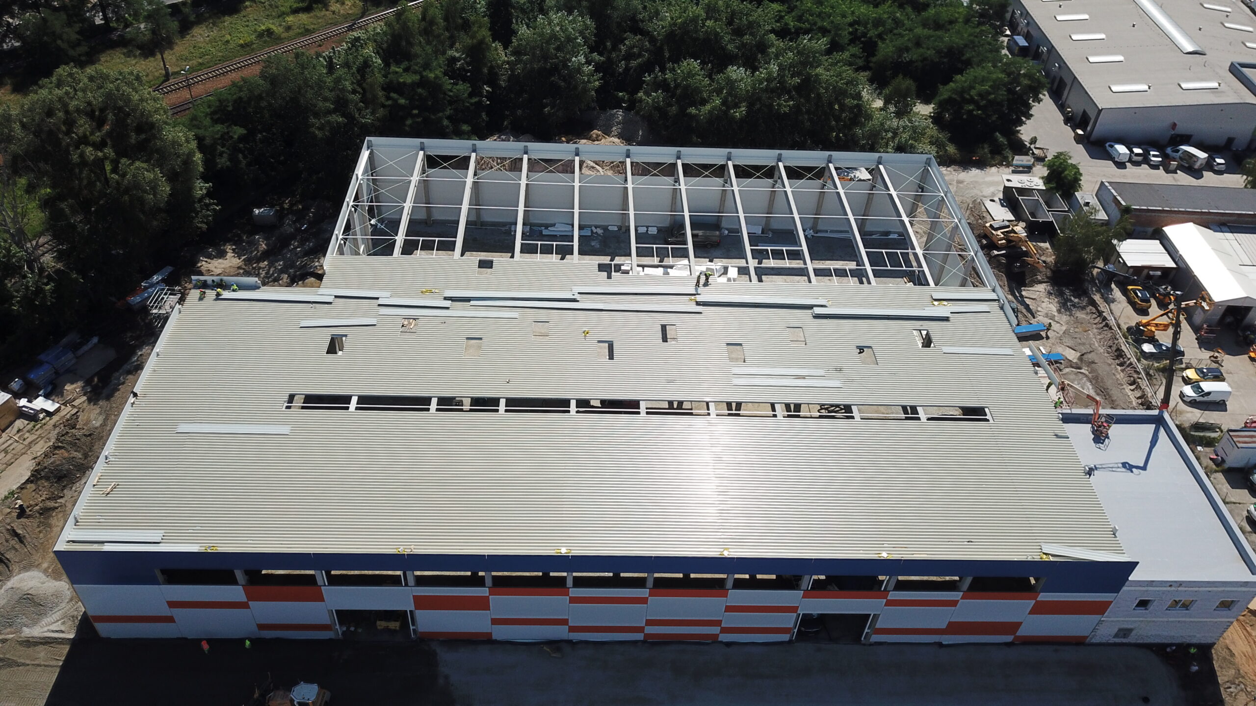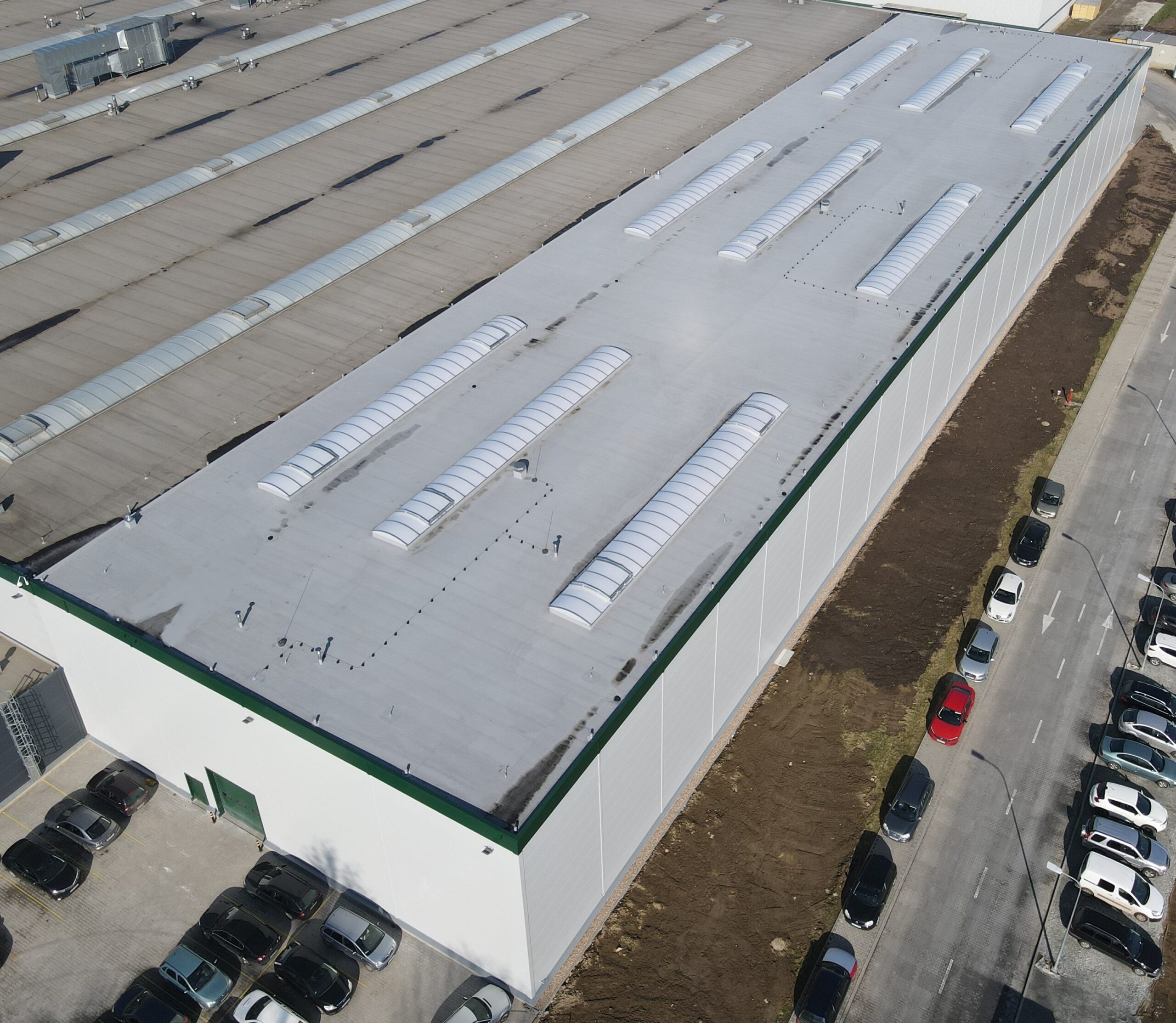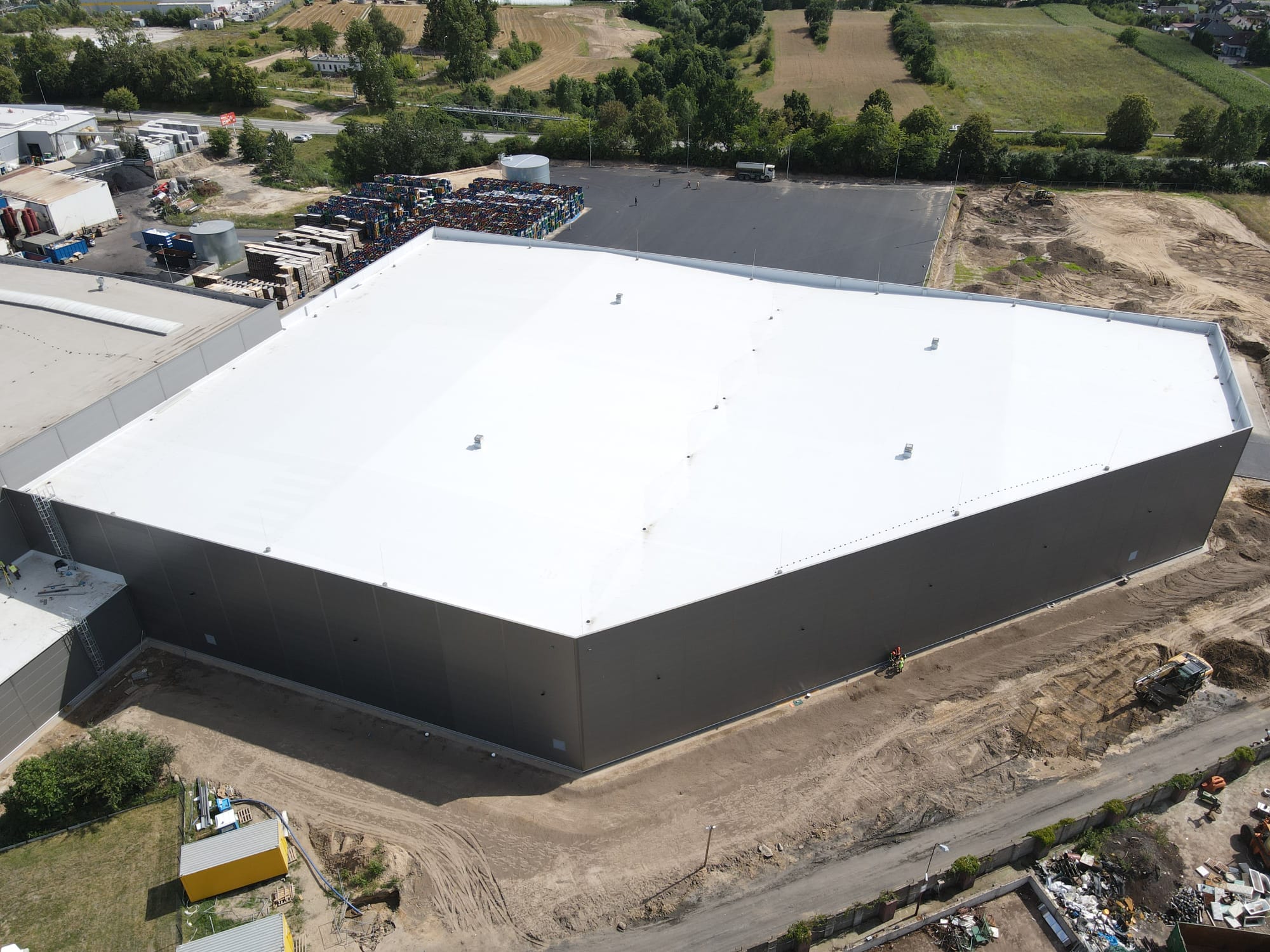 MLP GROUP S.A. Pruszków Montaż blach trapezowych oraz izolacja dachów na rozbudowie dwóch hal magazynowych – łącznie 28 150 m2